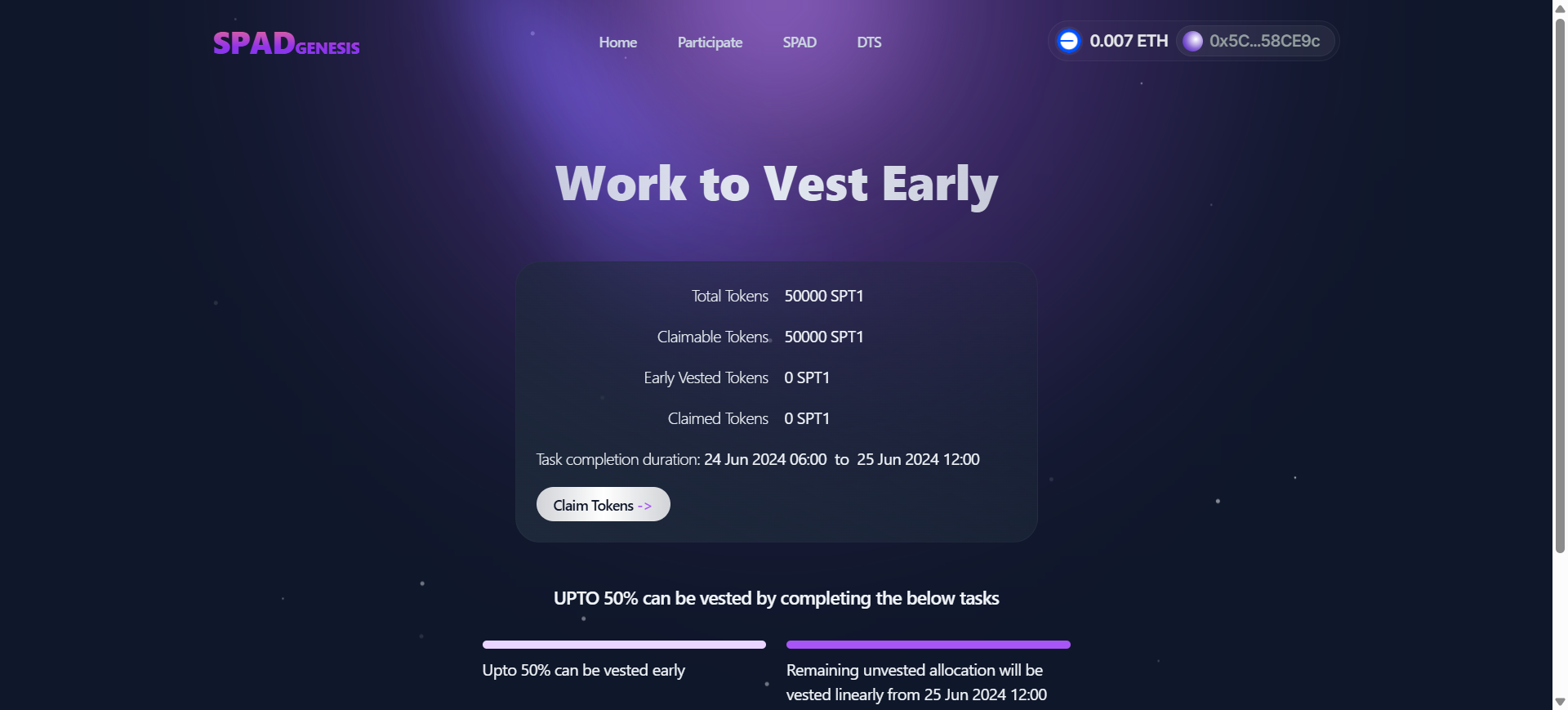 A Web3-based token vesting platform with whitelist validation, contribution flow, and task-based early vesting.