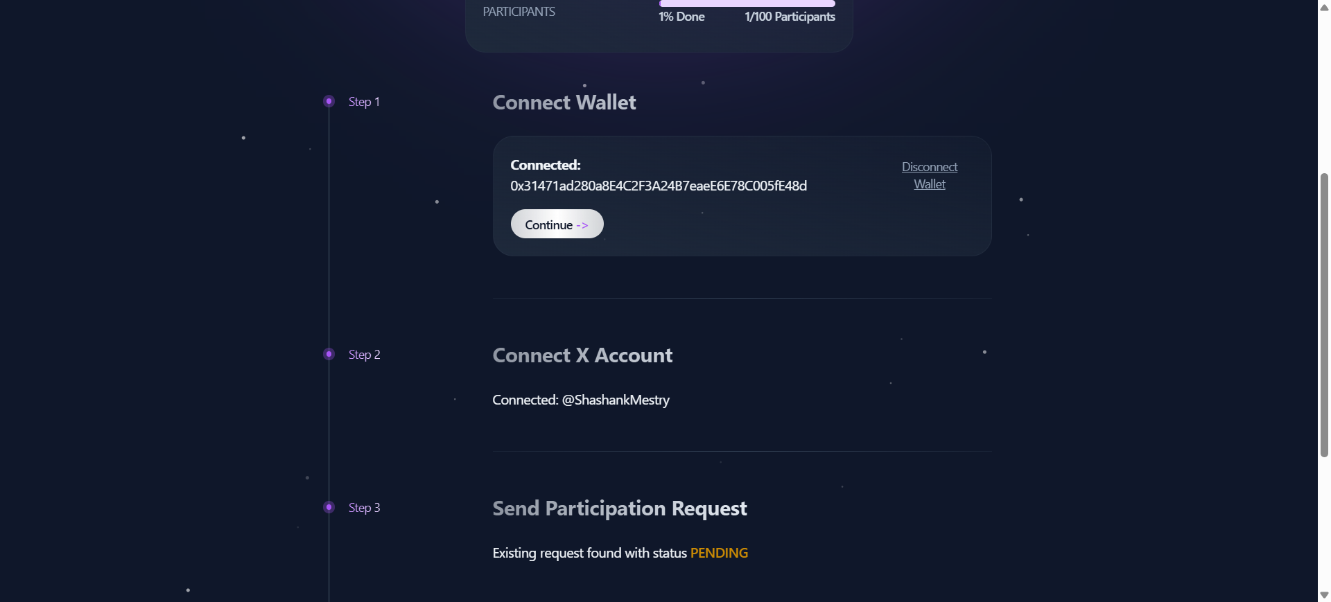 - • Integrated wallet authentication and X (Twitter) account validation.